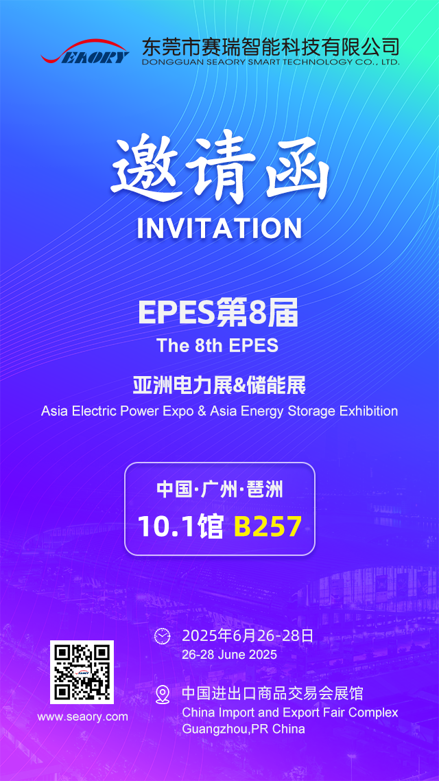The 8th EPES Asia Electric Power Expo & Asia Energy Storage Exhibition will be held at the China Import and Export Fair Complex located in Pazhou,Guangzhou from June 26 to 28, 2025. Shenzhen Seaory Technology Co., Ltd. will bring related products to participate in this exhibition and look forward to joining you in this grand event of the power energy industry.